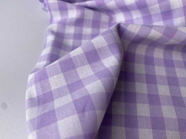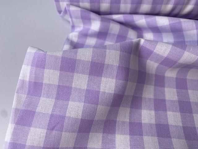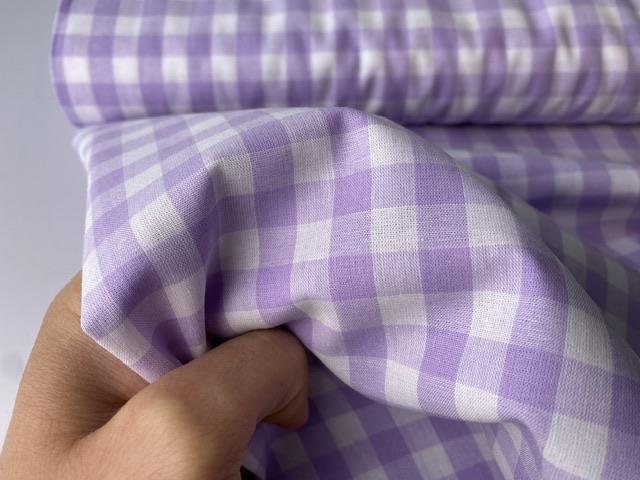 Fastvævet bomuld med køkkentern i pastel lilla og offwhite.