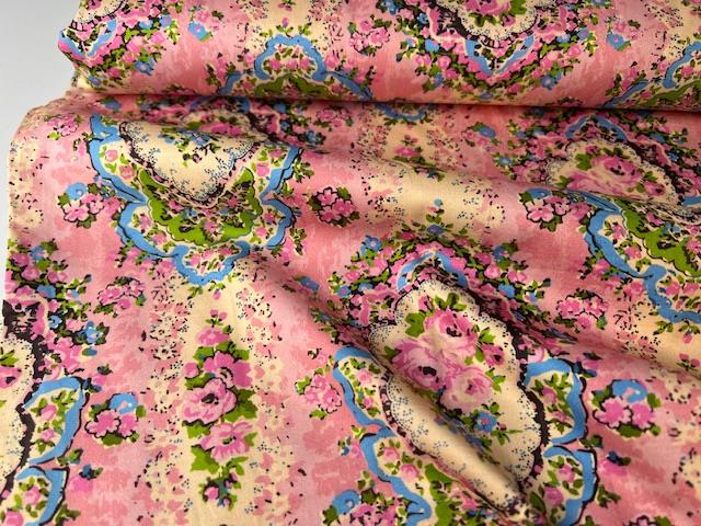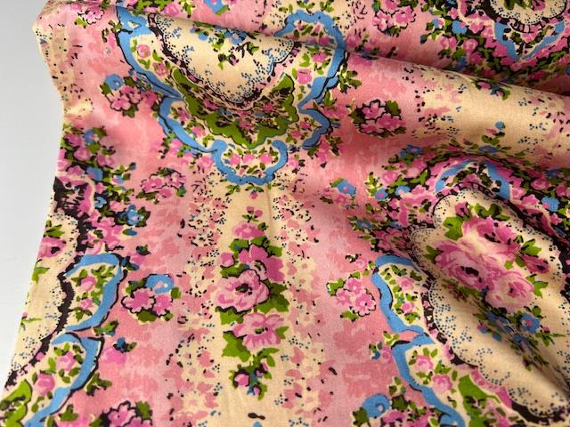 Fastvævet bomuld - lækker lyserød med smukke blomster