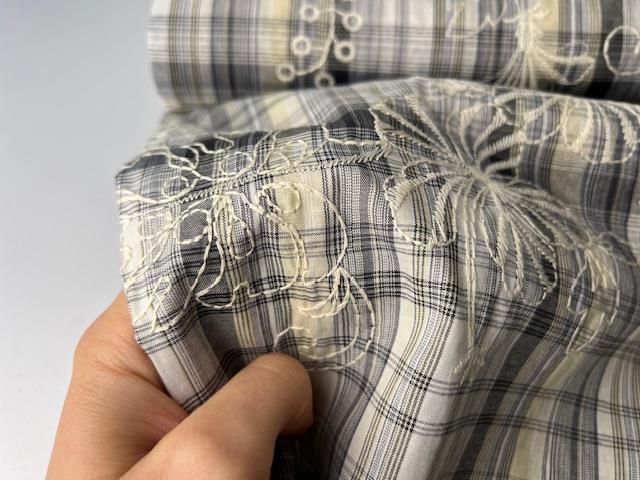 Skønt parti med fine kvaliteter til gode priser. Her en lækker fastvævet bomuld med fine tern. Fejl kan forekomme.