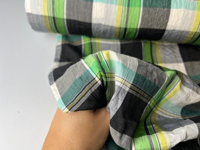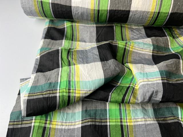 Skønt parti med fine kvaliteter til gode priser. Her en fastvævet bomuld med smukke tern. Fejl kan forekomme.