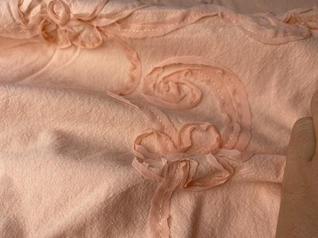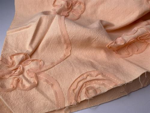 Fastvævet bomuld - lys pudderrosa med effektblomster