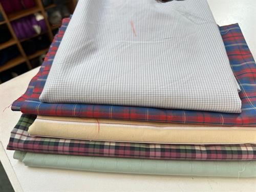 Bomuldsjersey, isoli, fastvævet viscose, hør, poplin, fastvævet bomuld, fleece, gauze og fløjl