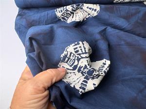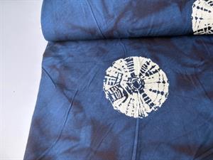 Fastvævet bomuld - unik batik i blå bund med striber og tern