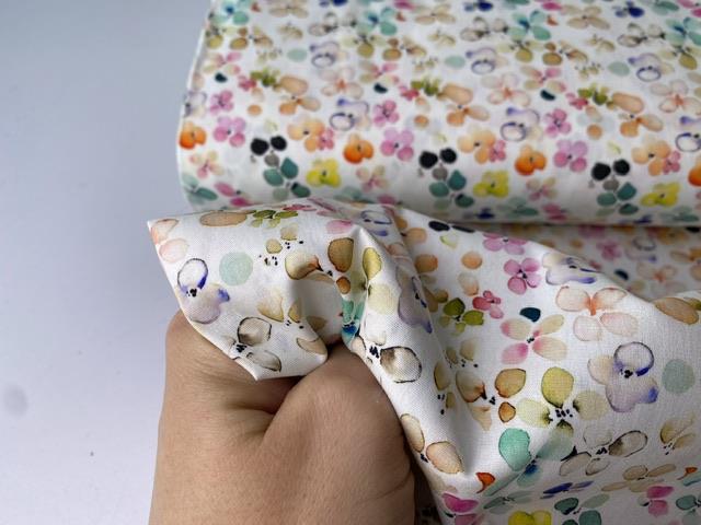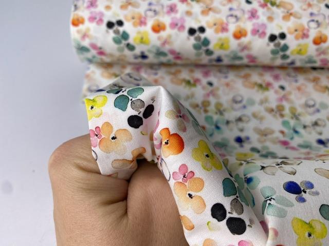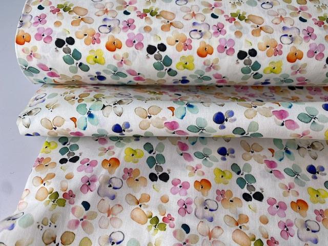 Fastvævet bomuldspoplin - skønne blomster i klare akvarel toner