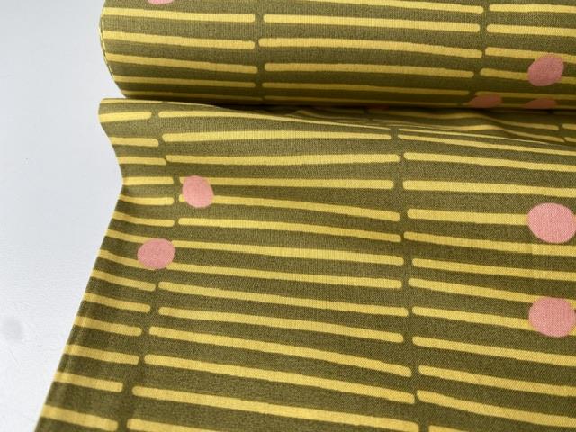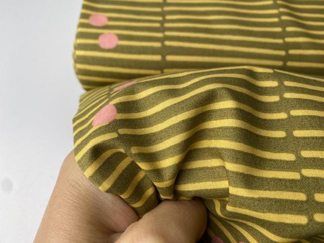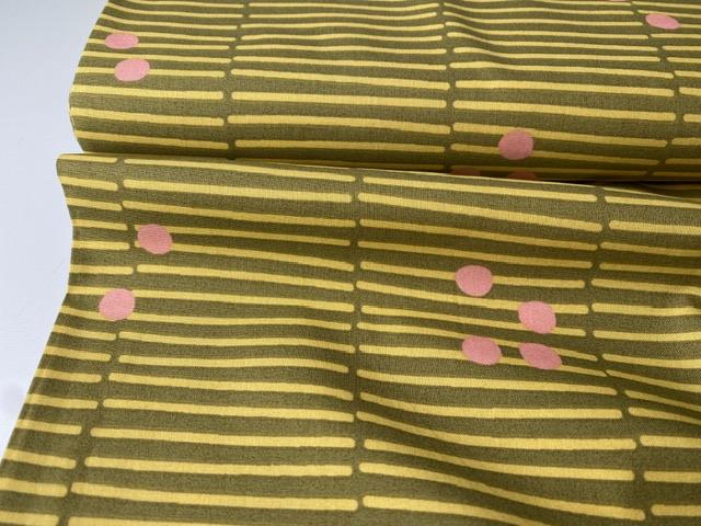 Fastvævet bomuldspoplin - brudte striber i sennepsgrøn