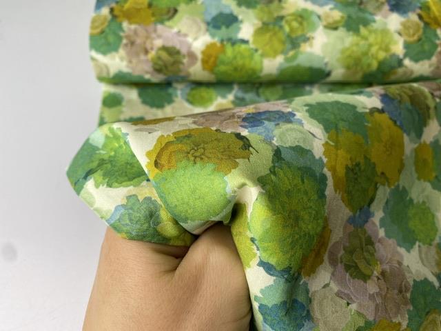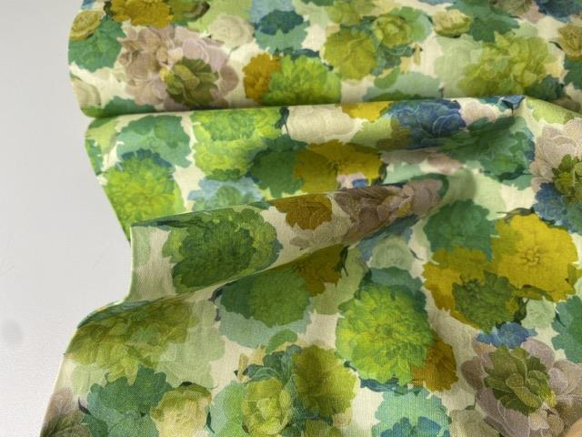 Fastvævet bomuldspoplin - smukke blomster i grønne toner