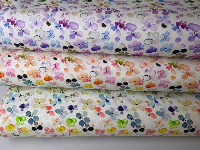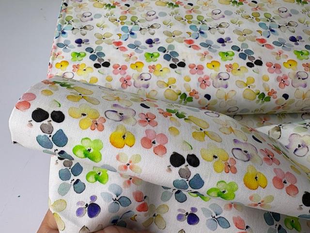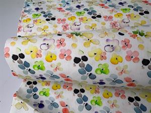 Fastvævet bomuldspoplin - skønne blomster i fine akvarel toner