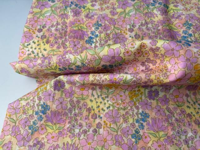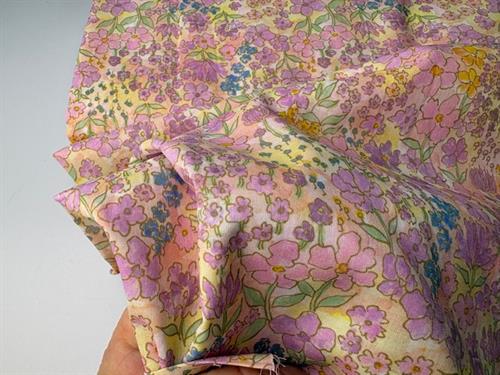 Fastvævet bomuldsvoile - yndige blomster i forårsfarver