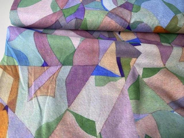 Fastvævet bomuldsvoile - abstrakt i lækre farver