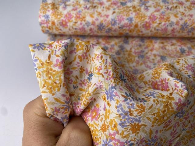 Fastvævet bomuldsvoile - små og yndige blomster