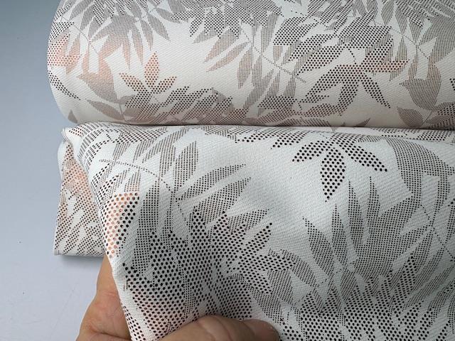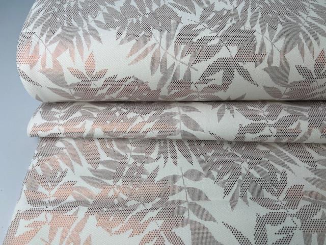 Fastvævet buksestof - lys bund med svagt folie print af grene
