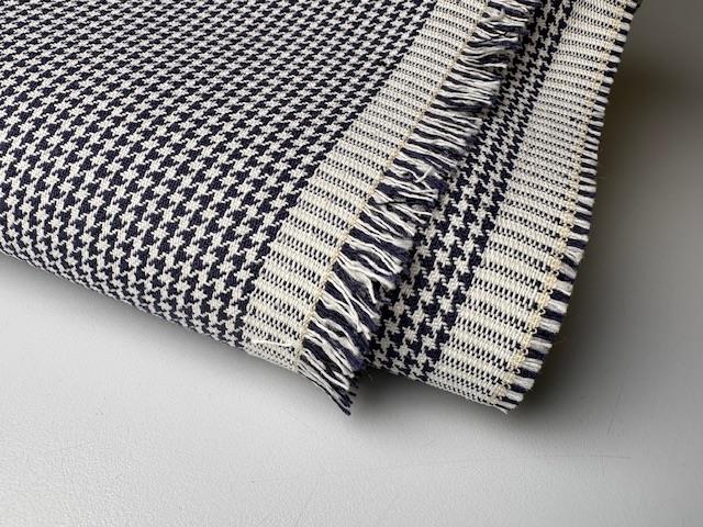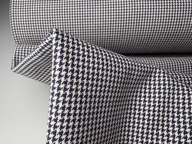 Fastvævet denim - mini hanefjed i mørk marine og offwhite