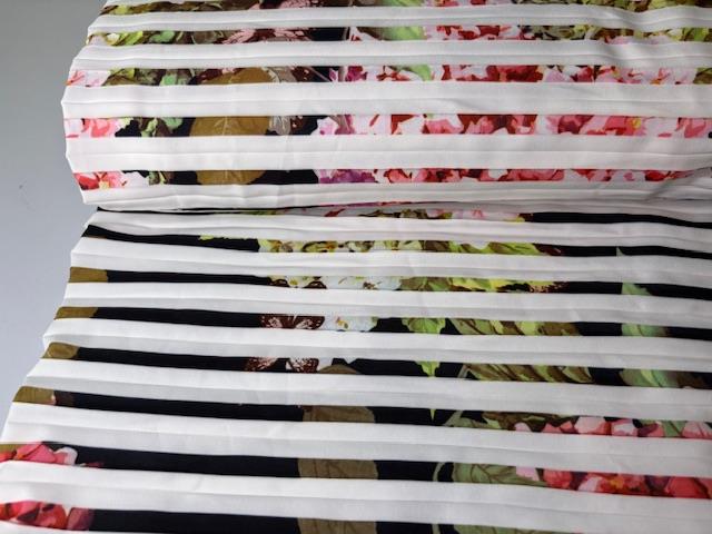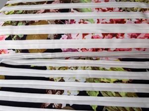 Fastvævet - effekt stof i hvid med blomster i plissé