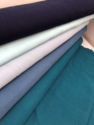 Lækker og økologisk dobbeltvævet gauze. Den er blød, let og findes i mange skønne farver. Gauze er svedabsorberende og flytter sig let fra kroppen ved gang eller i vinden, hvilket giver en behagelig oplevelse.