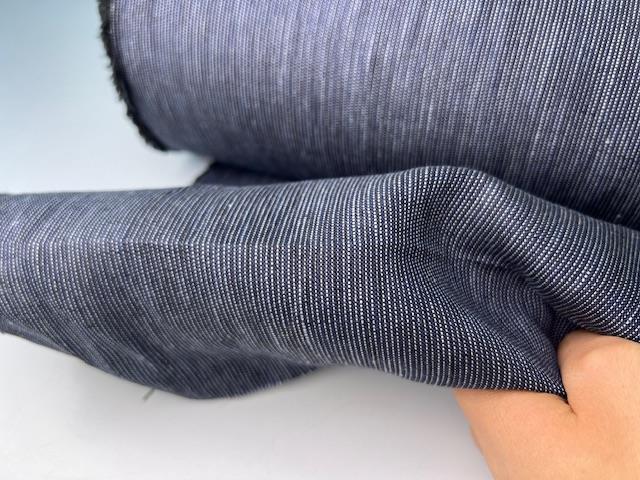 Fastvævet hør - micro stripes dark blue