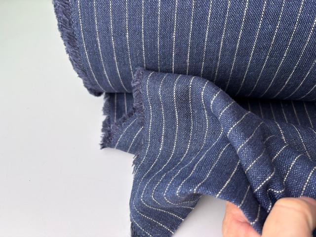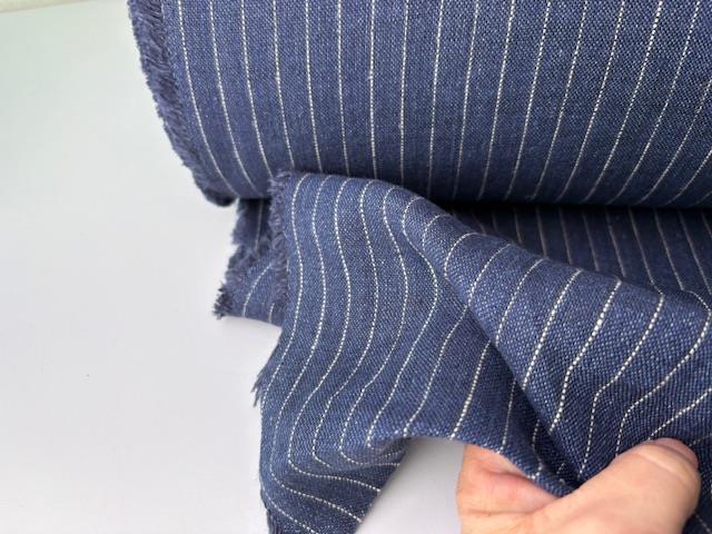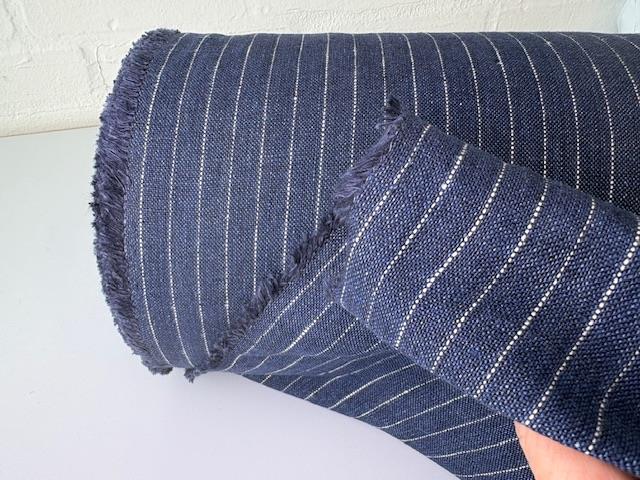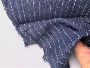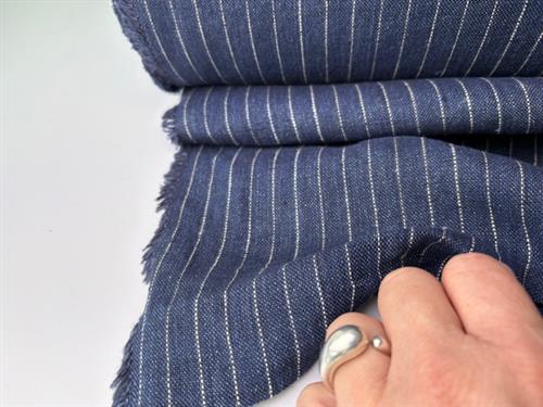 Fastvævet hør - mørkeblå med tynde fine striber
