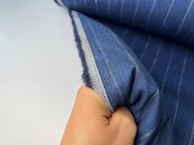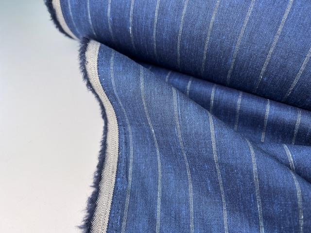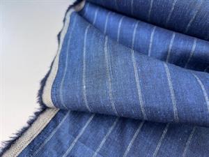 Fastvævet hør / uld med stræk - dark blue melange & stripes