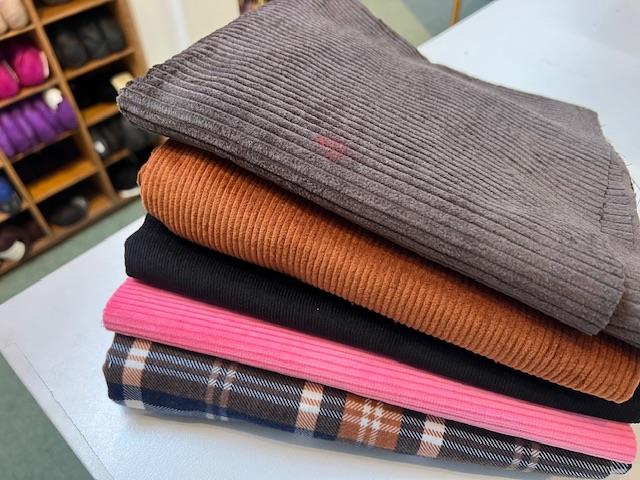Bomuldsjersey, isoli, fastvævet viscose, hør, poplin, fastvævet bomuld, fleece, gauze og fløjl
