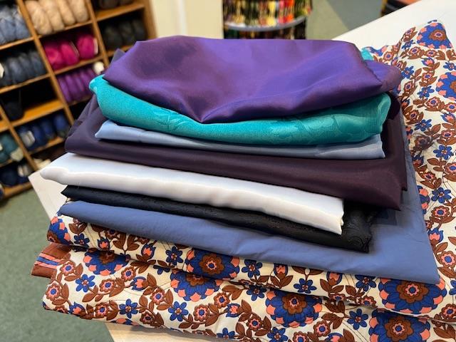 Bomuldsjersey, isoli, fastvævet viscose, hør, poplin, fastvævet bomuld, fleece, gauze og fløjl