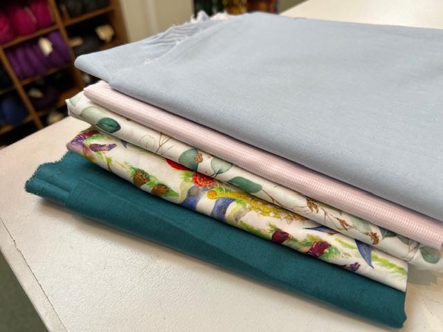 Bomuldsjersey, isoli, fastvævet viscose, hør, poplin, fastvævet bomuld, fleece, gauze og fløjl