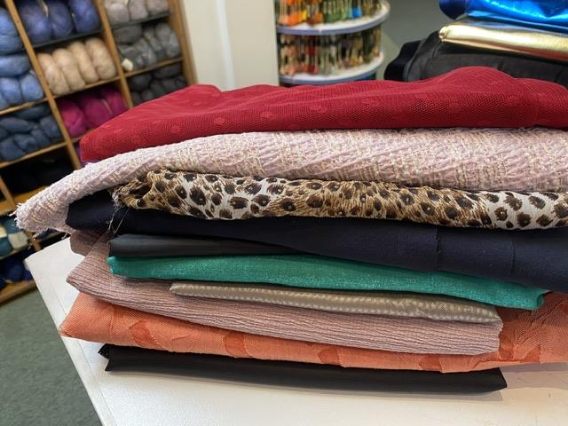 Bomuldsjersey, isoli, fastvævet viscose, hør, poplin, fastvævet bomuld, fleece, gauze og fløjl