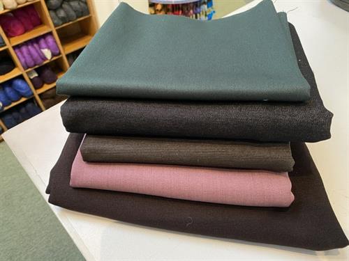 Bomuldsjersey, isoli, fastvævet viscose, hør, poplin, fastvævet bomuld, fleece, gauze og fløjl