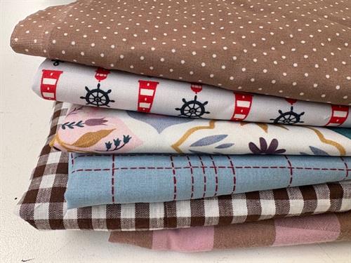 Bomuldsjersey, isoli, fastvævet viscose, hør, poplin, fastvævet bomuld, fleece, gauze og fløjl