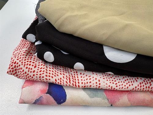Bomuldsjersey, isoli, fastvævet viscose, hør, poplin, fastvævet bomuld, fleece, gauze og fløjl