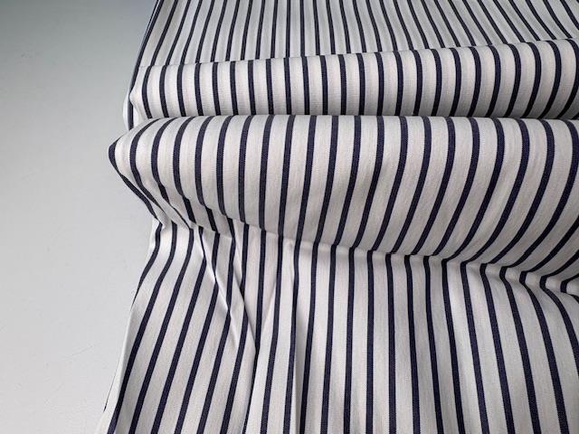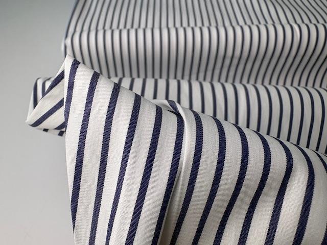 Fastvævet - skjortestof med striber i hvid og blå