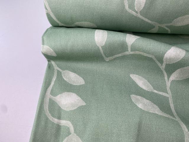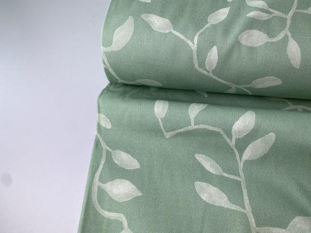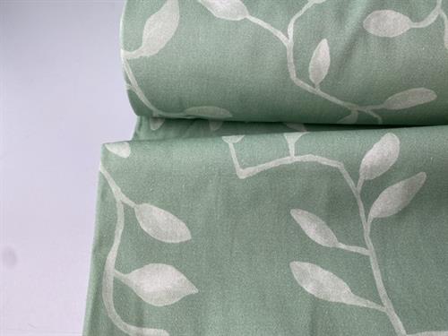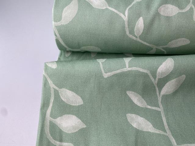 Fastvævet twill med stræk - yndige bladmotiver på mintgrøn bund