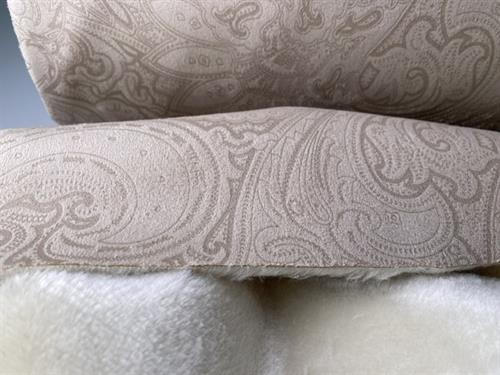 Fastvævet velour med utrolig blød fake fur på vrangsiden. Det er en skøn kvalitet og endda produktionsoverskud. Uh det kunne være fantastisk med en jakke i kvaliteten.