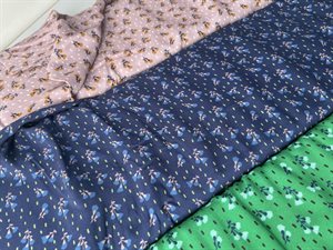 Bomuldsjersey, isoli, fastvævet viscose, hør, poplin, fastvævet bomuld, fleece, gauze og fløjl