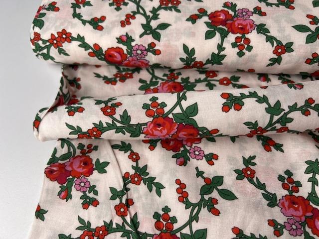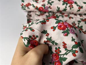 Fastvævet viscose - flotte romantiske blomster på lys bund