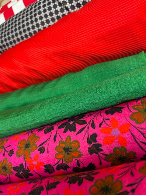 Bomuldsjersey, isoli, fastvævet viscose, hør, poplin, fastvævet bomuld, fleece, gauze og fløjl