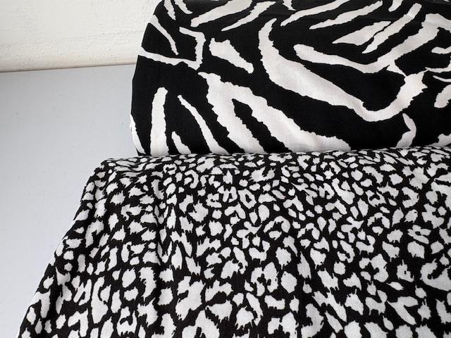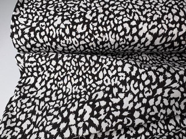 Fastvævet viscose - leopard pletter i sort og offwhite