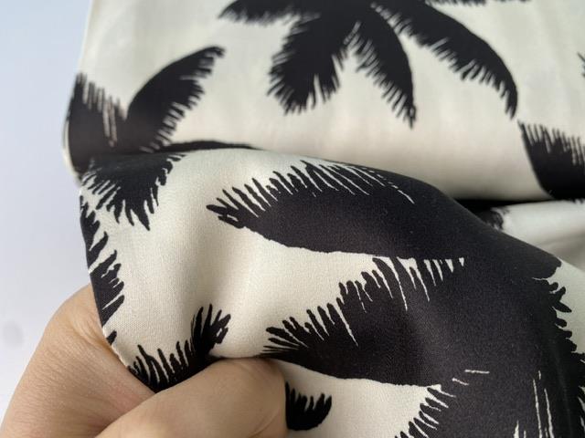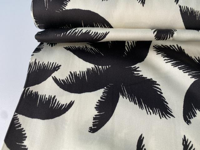 Skønt parti med fine kvaliteter til gode priser. Her en fastvævet viscose med fine motiver. Fejl kan forekomme.