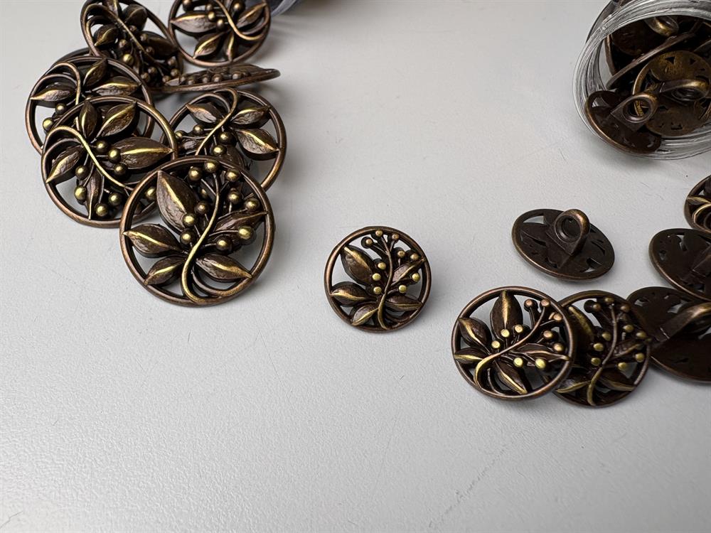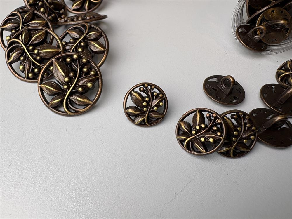 Fransk knap - sort/kobber i filigran bladmønster