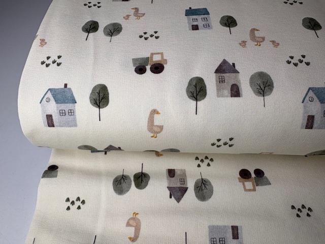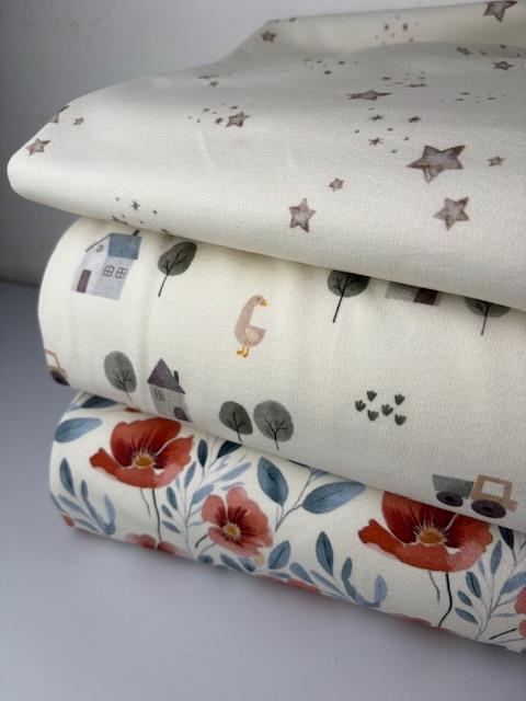 Skøn french terry med fine motiver i flotte farver. Kvaliteten er dejlig blød.