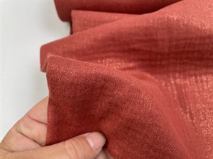 Det er florlet, let krøllende, tempererende og flytter sig ved gang, i vind og ved almindelig bevægelse. Gauze er lavet af bomuld, og mange af vores er endda økologiske. De fleste gauze er i to lag, dobbelt gauze. Vi har også nogen, der er i tre lag. Hvert lag består af en helt tynd, fin og let og løst vævet bomuld hæftet sammen med små nærmest usynlige sting. Tilsammen udgør lagene et ikke gennemsigtigt, blødt lækkert og føjeligt stykke stof. Klassisk anvendelse er stofbleer. Men det er fantastisk til kjoler, nederdel, bluser, bukser, shorts, pudebetræk, sengetæpper, vaskeklude og alt muligt andet beklædning.
