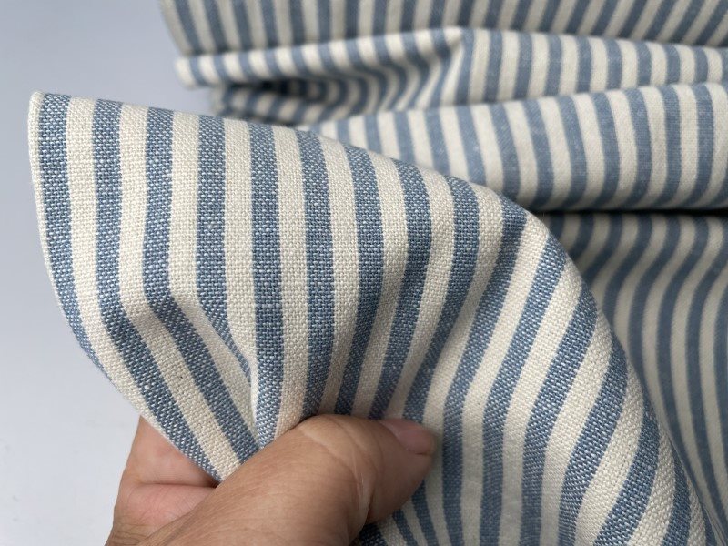 Genbrugsbomuld - 0,5 cm striber i blå/offwhite