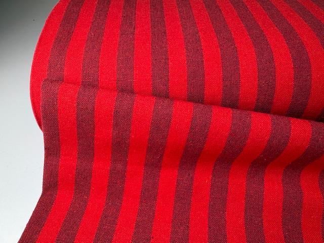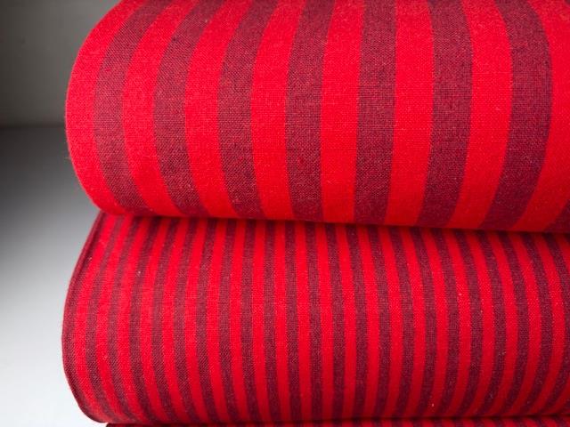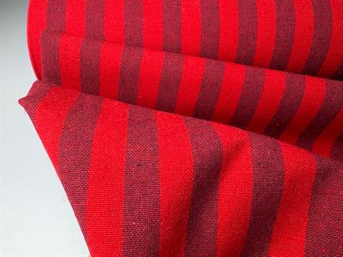 Genbrugsbomuld - 1 cm striber i varme røde toner