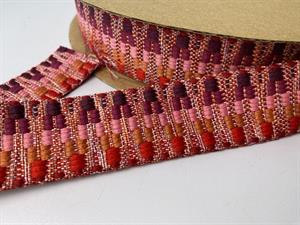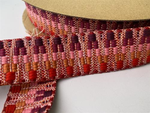 Gjordbånd - taskehank med smuk vævning i røde toner, 40 mm