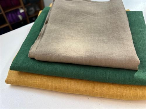 Bomuldsjersey, isoli, fastvævet viscose, hør, poplin, fastvævet bomuld, fleece, gauze og fløjl
