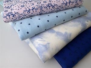 Bomuldsjersey, isoli, fastvævet viscose, hør, poplin, fastvævet bomuld, fleece, gauze og fløjl