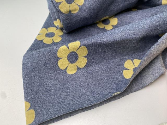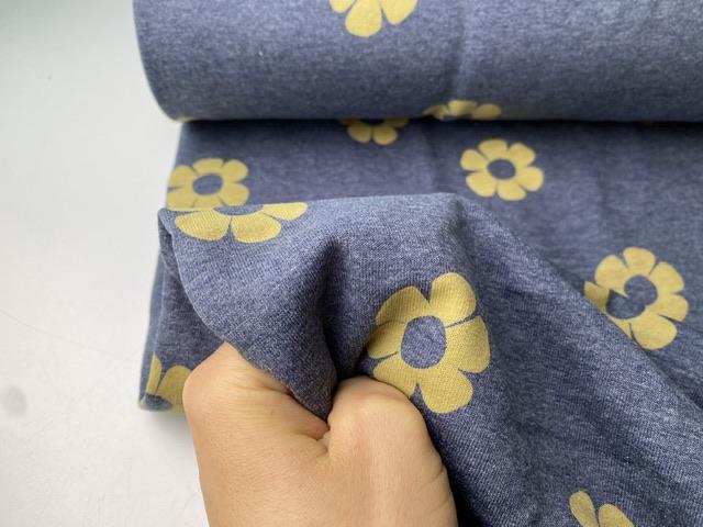 Skøn isoli med flotte gule blomster på denimblå bund. Kvaliteten er dejlig blød.