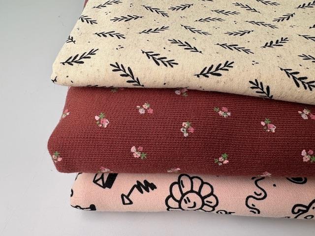 Bomuldsjersey, isoli, fastvævet viscose, hør, poplin, fastvævet bomuld, fleece, gauze og fløjl