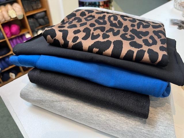 Bomuldsjersey, isoli, fastvævet viscose, hør, poplin, fastvævet bomuld, fleece, gauze og fløjl