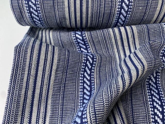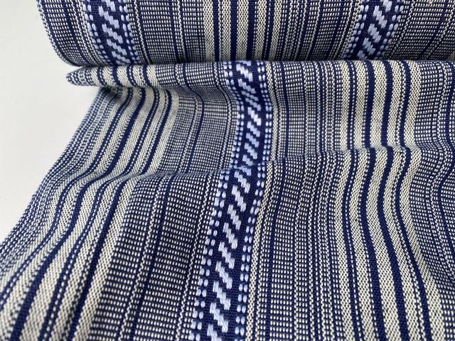 Drønlækker jacquardvævet polyester med flotte garnfarvede striber.