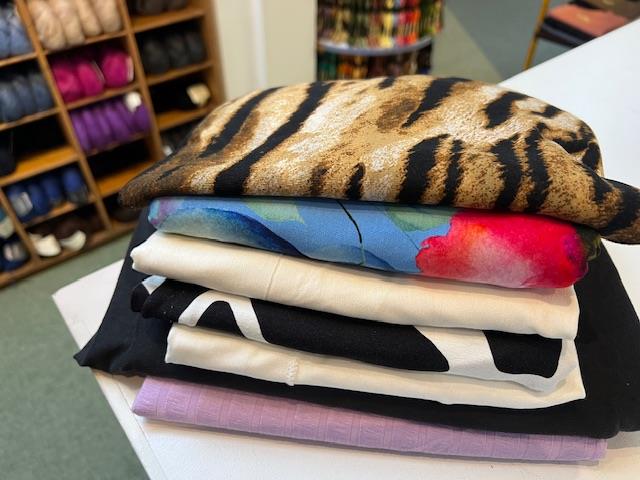Bomuldsjersey, isoli, fastvævet viscose, hør, poplin, fastvævet bomuld, fleece, gauze og fløjl