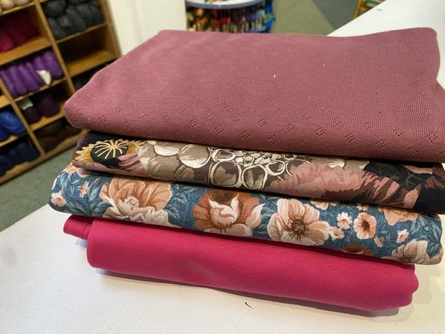 Bomuldsjersey, isoli, fastvævet viscose, hør, poplin, fastvævet bomuld, fleece, gauze og fløjl